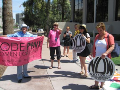 These protestors were, once again, bussed in from Los Angeles. They are union members. The busses left from Dodger Stadium before sunrise this morning. Typically, one would expect that union members have jobs so who do they work for and why are thousands of them able to get the same day off every time they decide they need to come to Arizona and terrorize us? They are here to intimidate not just Arizonans but any and all other states and cities that might be considering laws similar to SB 1070.